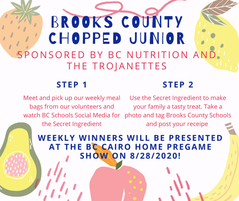 Thanks to the generosity of Mr. Robert Varnedoe each meal bag will contain 2 pints of fresh blueberries! We will also begin our Chopped Junior contest. Our secret ingredient for this week's recipe is BLUEBERRIES! See the infographic below for details on how to submit your recipe and the picture as an example of a submission. Make sure you tag Brooks County Schools in your Facebook posting and make your posting public so we can see it.