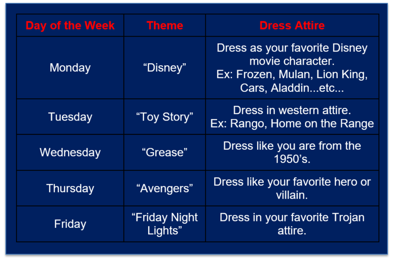 We’re so excited to participate in QES Homecoming Week, October 19-23rd. Traditional and Virtual Students are encouraged to join in on the fun! Please dress in designated themes to show support for our Mighty Trojans! The Homecoming Parade is Friday, October 23 @ 5:00 PM. The parade will take place downtown on North Court Street. The Homecoming Game is Friday @ 7:30 PM @ Veterans Stadium.